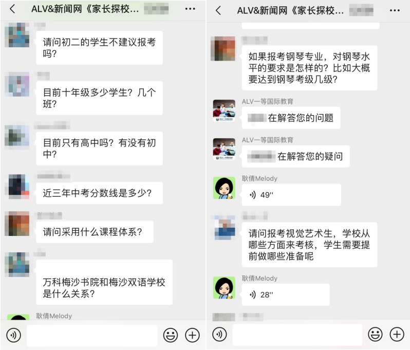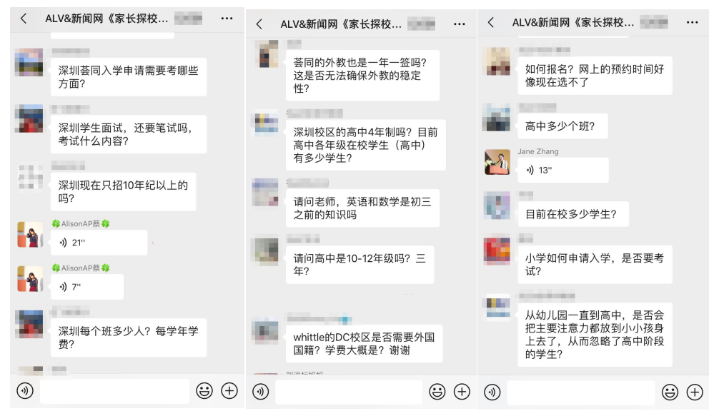 據(jù)介紹,在這三場探?;顒又?,招生官耐心而又細致的逐一為家長答疑解惑,贏得家長對本次活動的高度認可。以下為“家長探校團”微信群內(nèi)互動截圖: