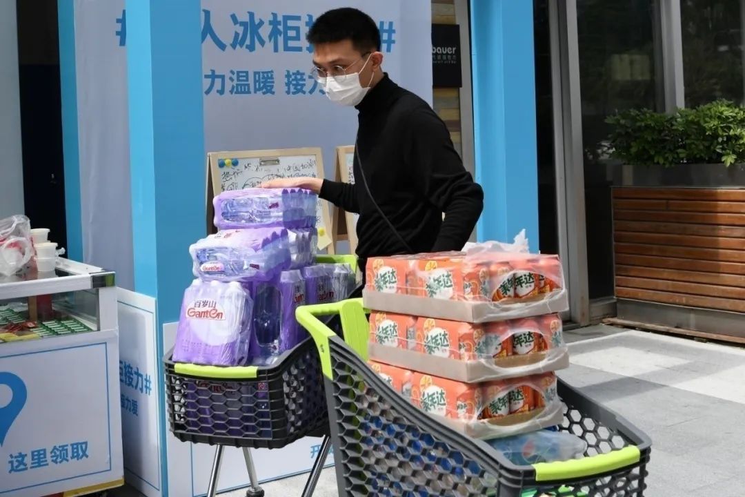 一瓶飲料、一份盒飯、一個口罩,在這個特殊的時期,展示了這個城市的溫暖。(新華社記者 趙瑞希 梁旭 攝)
