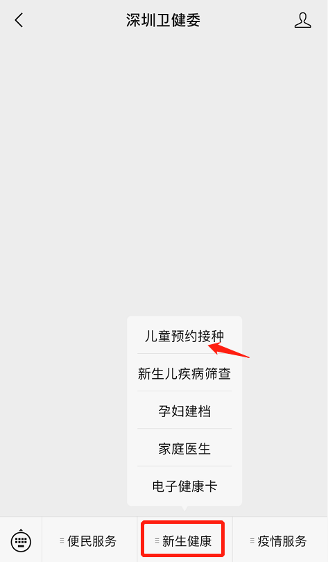 點擊公眾號菜單欄“新生健康”-“兒童預(yù)約接種”▽