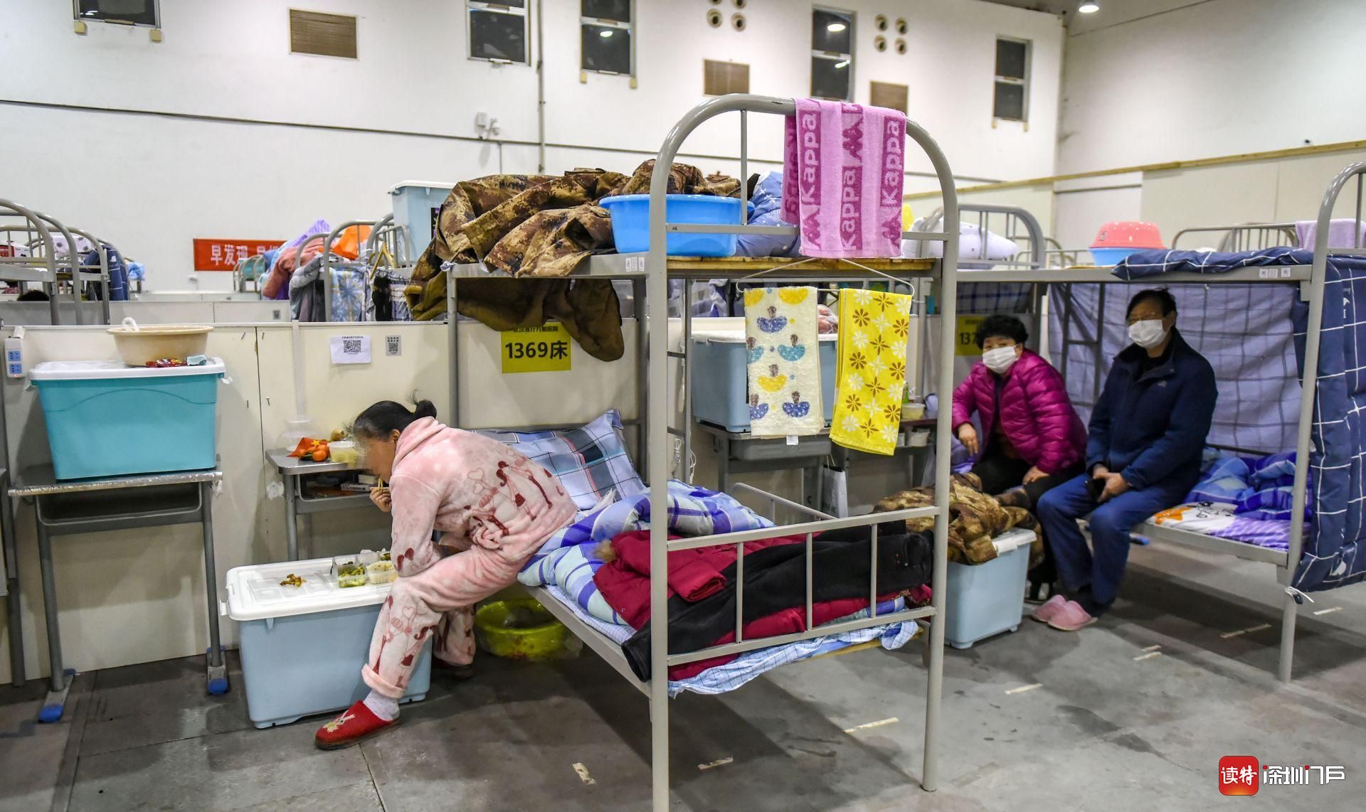 經(jīng)過社區(qū)人員一再勸說,2月9日下午,李玲和大姐、三妹以及病友們被集中送到客廳方艙醫(yī)院C區(qū),大姐夫、弟弟被送至重癥室。此時,方艙醫(yī)院AB區(qū)已經(jīng)入住近千名隔離病人?!昂臀覀円黄疬M(jìn)入方艙醫(yī)院的人有200多,一起涌入方艙,我們懷著忐忑、彷徨的心情入住了方艙。”李玲這樣描述當(dāng)時的場景:一人一個儲物柜,一個小桌子,一張上下鋪床,床上新鋪了被褥,還有電熱毯,以及一應(yīng)洗漱用品和迷彩棉衣,看著這一應(yīng)物資,心里稍安。