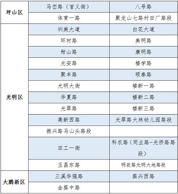 此外,根據(jù)市民反映的信息,深圳交警進(jìn)行實地走訪、勘查,決定再增設(shè)20條路段作為疫情期間臨時停車區(qū)。截至2020年3月3日,深圳交警共在全市171條路段做為疫情期間道路臨時停車區(qū),具體設(shè)置路段如下: