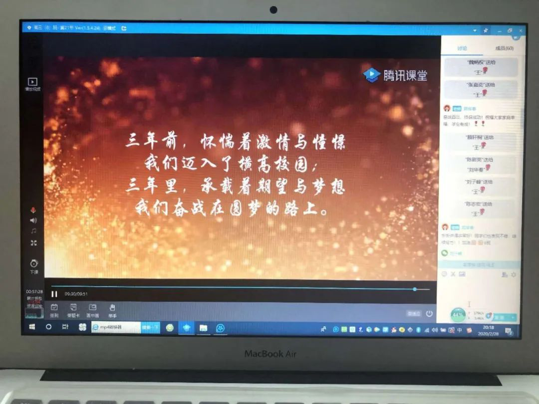 2月28日,橫崗高級中學(xué)2020屆高三全體師生利用騰訊課堂召開以班級為單位的網(wǎng)上“高考百日誓師大會(huì)”。各班精心制作PPT,提前錄制老師、家長、同學(xué)的祝福小視頻,科任老師、學(xué)生家長、學(xué)生代表連麥鼓勵(lì),同學(xué)們最后對著電子屏幕高喊百日誓詞同時(shí)下定決心,為自己的夢想,刻苦拼搏,永不言悔。網(wǎng)上“百日誓師”豪情滿懷、溫情涌動(dòng)、感人至深。