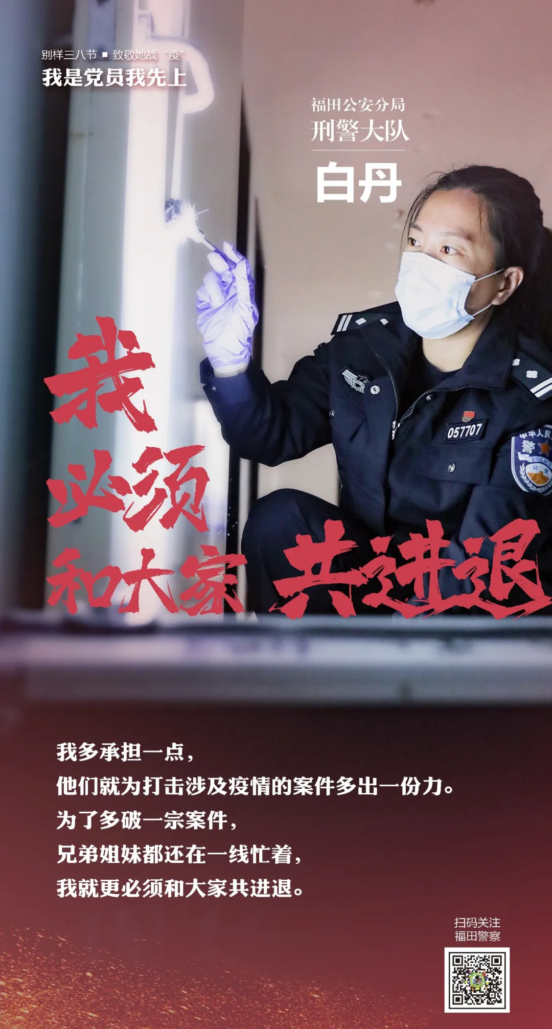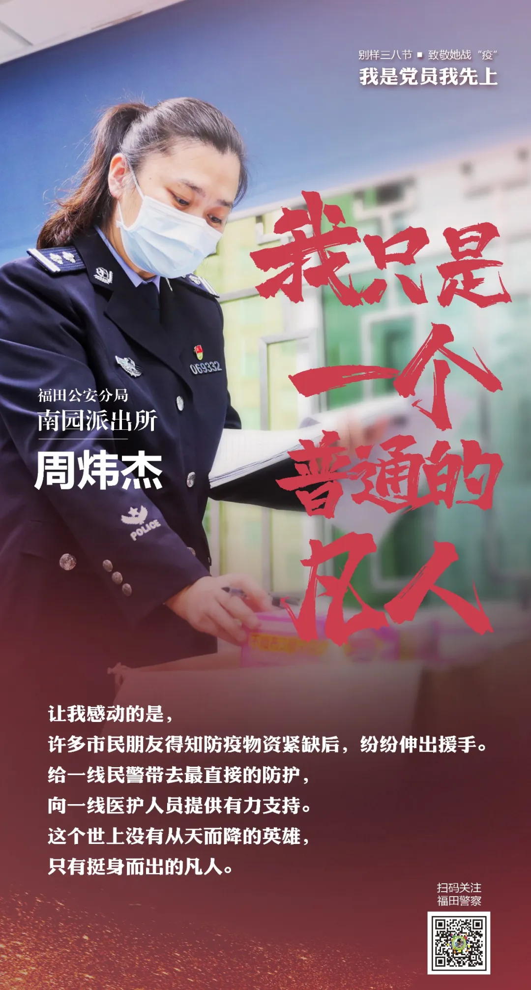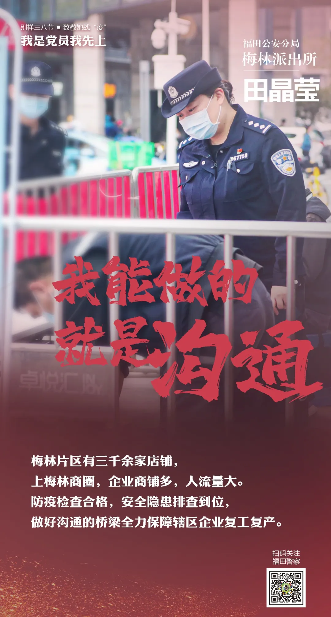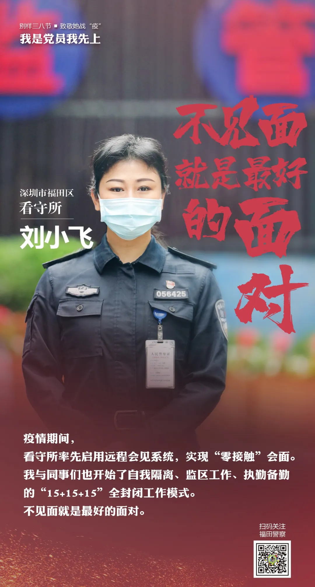 在“三八”國際勞動婦女節(jié)來臨之際,讓我們走進(jìn)福田警營,聽聽這些“最美逆行者”的戰(zhàn)疫故事。
