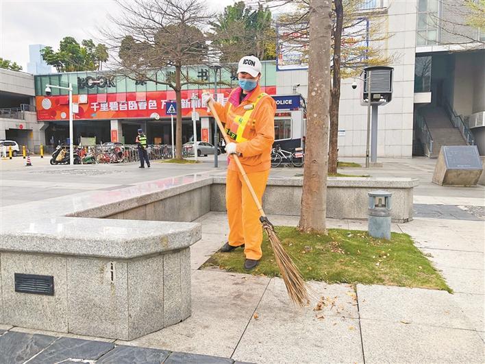 凌晨3點(diǎn)半左右,家住福田區(qū)竹子林的環(huán)衛(wèi)工人吳應(yīng)美就起床了,麻利收拾好,戴上口罩,4點(diǎn),她騎著電動(dòng)車來(lái)到中心書城片區(qū)開(kāi)始了一天的打掃工作。疫情發(fā)生后,全市環(huán)衛(wèi)工人依然同往常一樣,沒(méi)停歇一天。39歲的吳應(yīng)美來(lái)自云南,在深圳從事環(huán)衛(wèi)工作已經(jīng)9年,很少回老家過(guò)春節(jié),去年原本打算這個(gè)春節(jié)回老家,受疫情影響沒(méi)有走成,便一直風(fēng)雨無(wú)阻堅(jiān)守崗位。