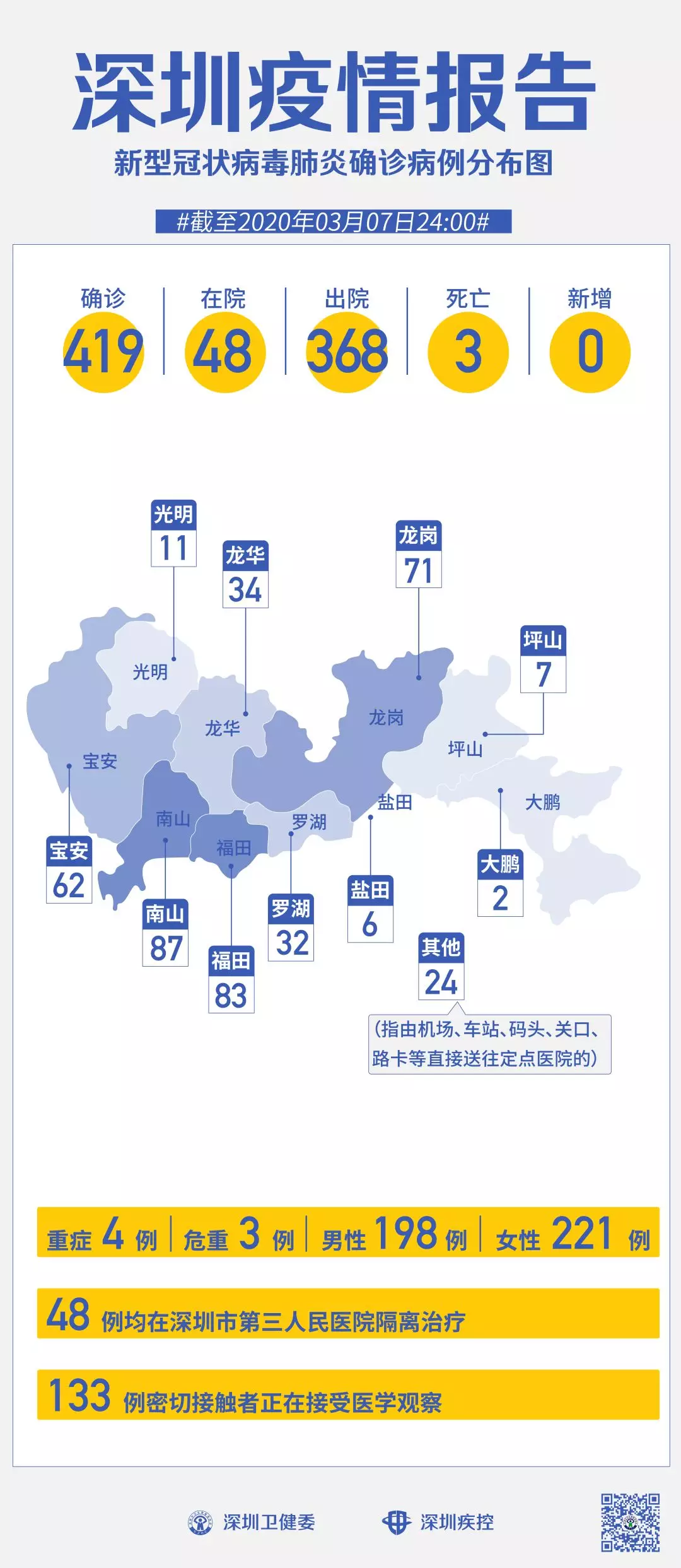 深圳“0”新增!累計(jì)419例,在院48例(截至3月7日)