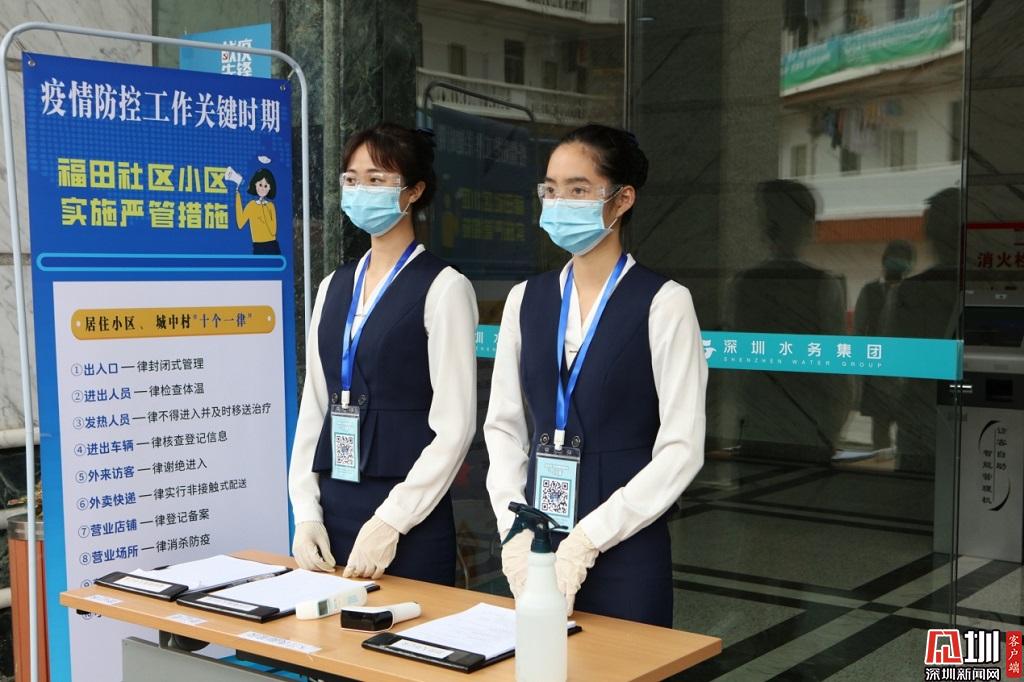把好安全關。水務集團工作人員正對出入萬德大廈的人進行登記和體溫檢測。