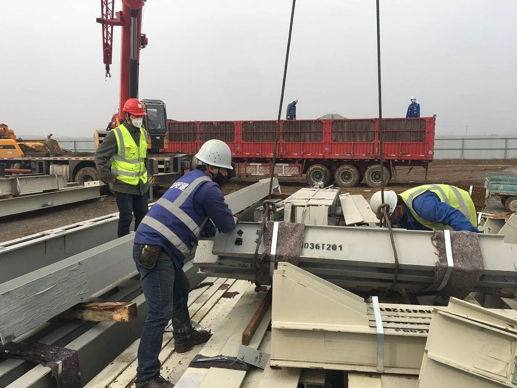 任丘能源生態(tài)園復(fù)工后首車鋼結(jié)構(gòu)到現(xiàn)場,相關(guān)人員正在有序清點(diǎn)、卸車、堆放,為下一步安裝工程夯實(shí)基礎(chǔ)。