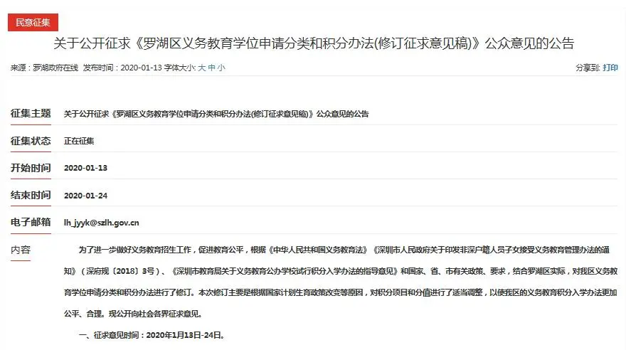羅湖區(qū)在1月13日發(fā)布了《羅湖區(qū)義務(wù)教育學(xué)位申請(qǐng)分類和積分辦法(修訂征求意見稿)》向市民征求意見。
