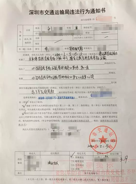 最終該貨車被暫扣,駕駛員劉某林,因運(yùn)輸危險貨物被予以3萬元的處罰。