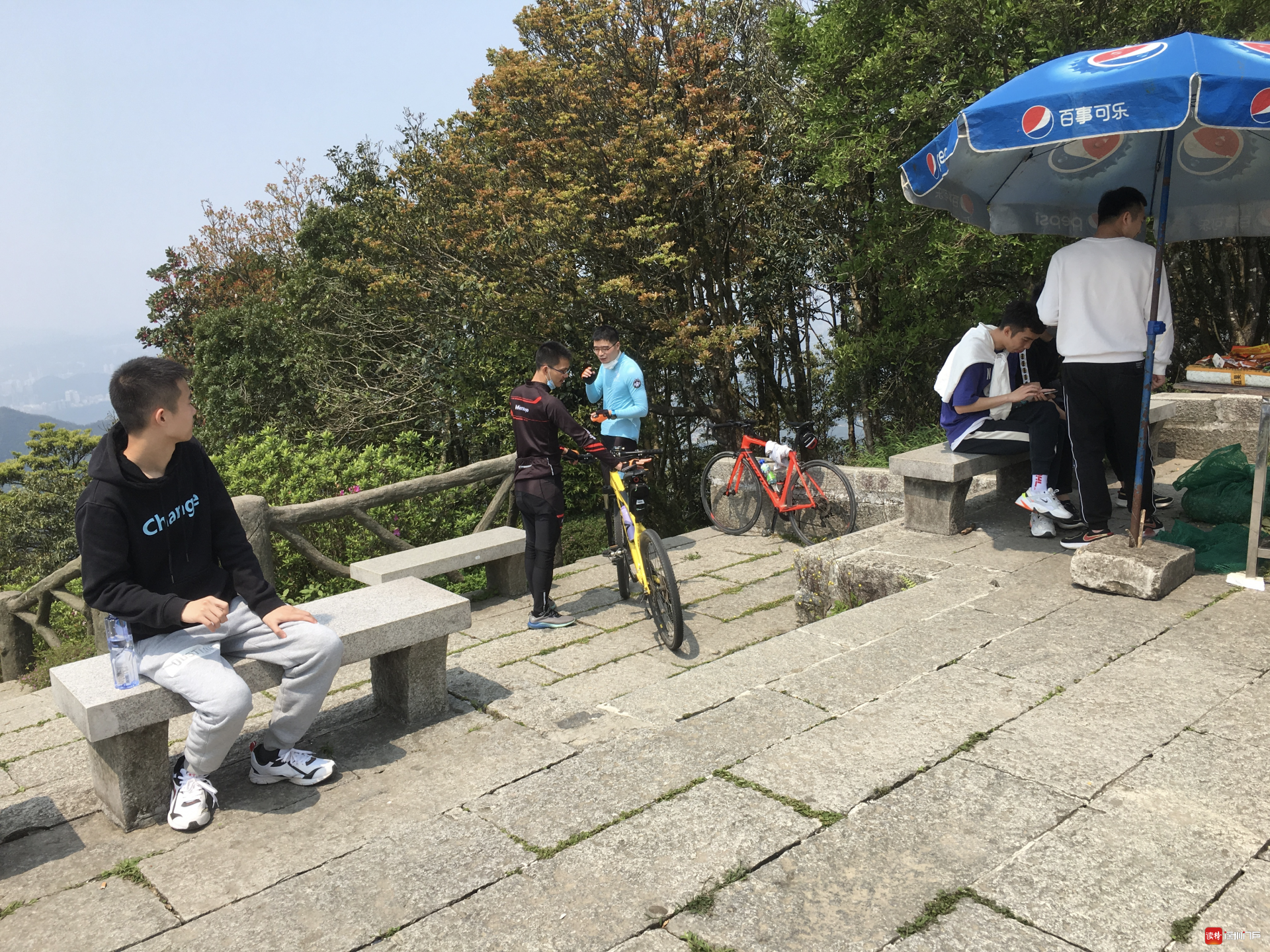 在各條登山道,沿途可見擺賣零食、飲料的小攤販,小梧桐等休息區(qū)的便利店也已重新開張。金鐘花、杜鵑花、石斑木花等各類花草吐出新葉,花開正盛?!翱吹竭@么多人爬山,很多還摘了口罩,感覺又回到了疫情前?!辩娤壬菓敉獾巧疥?duì)隊(duì)長兼攝影師,此次登山不單單是他的個(gè)人想法,還得到許多隊(duì)友響應(yīng)。