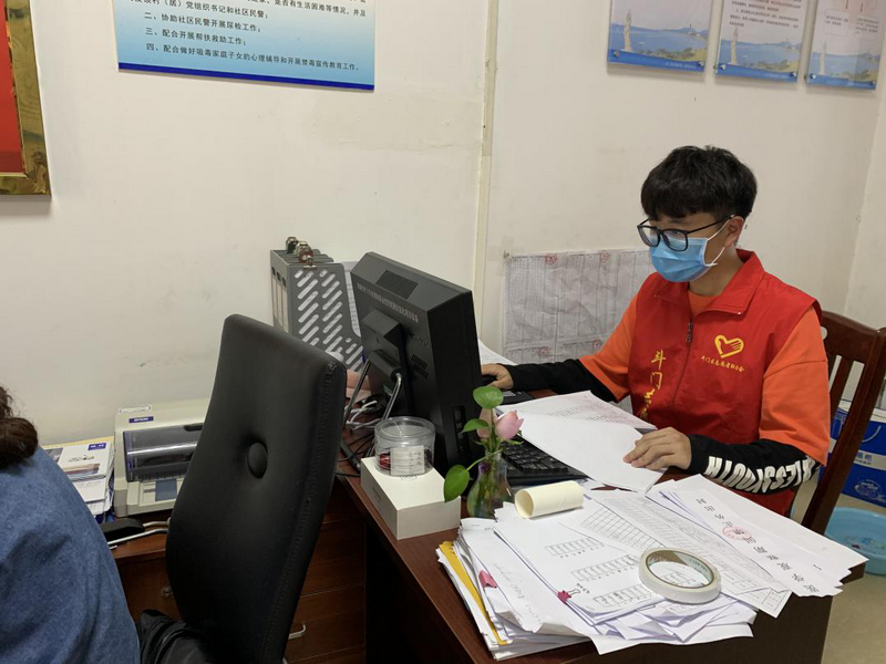 深圳信息學(xué)院19級劉泓濤在社區(qū)參加志愿服務(wù)。