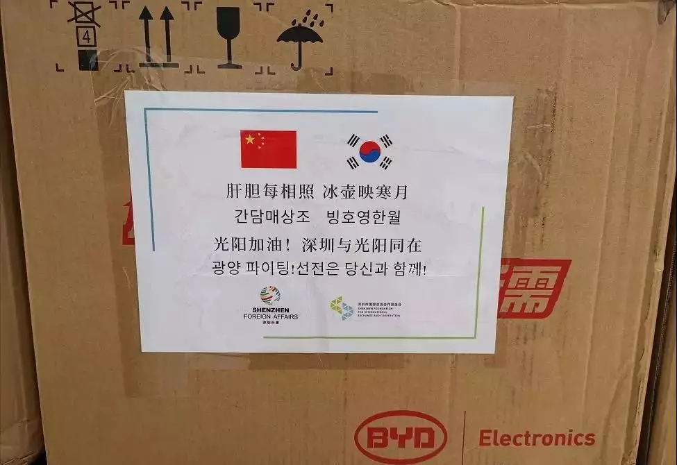 作為深圳的國際友好城市,就在一個月前,仁川、光陽、釜山在深圳最需要的時候,陸續(xù)捐贈了數(shù)萬只口罩,數(shù)千副護(hù)目鏡和大量醫(yī)用防護(hù)服等防疫物資。
