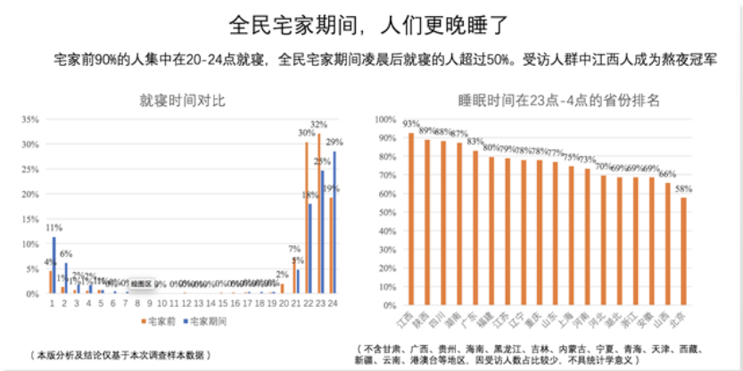 熬夜前三名的省份是:江西、陜西和四川