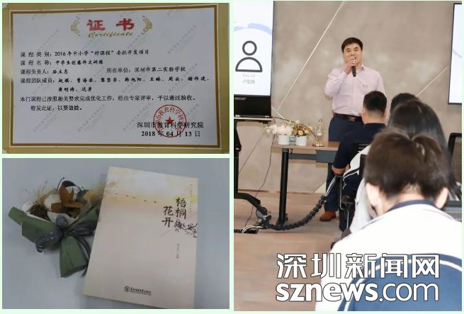 多年來,孫立志老師一直努力實(shí)踐“快樂語文”“和語文生活化,生活語文化”的大語文教學(xué)理念,提倡并身體力行在語文教學(xué)實(shí)踐中,創(chuàng)設(shè)生活化的情境,讓語文教學(xué)與社會實(shí)踐緊密結(jié)合,激發(fā)學(xué)生興趣,引導(dǎo)學(xué)生深入創(chuàng)新思考和個性表達(dá),真正形成較強(qiáng)的語文能力,引導(dǎo)學(xué)生成長為有學(xué)養(yǎng)、有高度、有見地、有情懷的大寫的人。他認(rèn)為,由于語文學(xué)科的工具性和人文性兼具的特性,語文教學(xué)對老師的要求較高,語文老師除了要做淵博的閱讀者、深刻的思想者、勤奮的寫作者、敬業(yè)的教育者,還要努力做一個興愛好廣泛、生動有趣的學(xué)生心理上的“同齡人”,千方百計(jì)引導(dǎo)學(xué)生體驗(yàn)閱讀與思考,創(chuàng)新與寫作的樂趣,從而激發(fā)學(xué)生的語文學(xué)習(xí)的內(nèi)驅(qū)力,真正達(dá)到“教是為了不教”的目的。為此,孫立志老師在勤奮教學(xué)并取得優(yōu)異成績的同時(shí),努力讓語文教學(xué)真正在學(xué)生人生打下深深印記,奠基學(xué)生終生發(fā)展,他做了很多探索:開系列講座給學(xué)生講《春秋戰(zhàn)國——牛人的黃金時(shí)代》,開發(fā)全市繼續(xù)教育課給老師講《東周典型人物研究》,耕耘微信公號笑談歷史風(fēng)云,開發(fā)深圳市好課程《中學(xué)生創(chuàng)意作文訓(xùn)練》,帶領(lǐng)學(xué)生公開出版深圳第一部班級學(xué)生集體著作《梧桐花開》,指導(dǎo)大批學(xué)生在各級各類刊物發(fā)表文章,在各類語文比賽樂促教,以歌助學(xué),只不過是孫立志老師教學(xué)探索創(chuàng)新的一葉一花,相信師者每一點(diǎn)守責(zé)盡心的努力,都會助力學(xué)生人生之樹上結(jié)出香甜的果實(shí)。