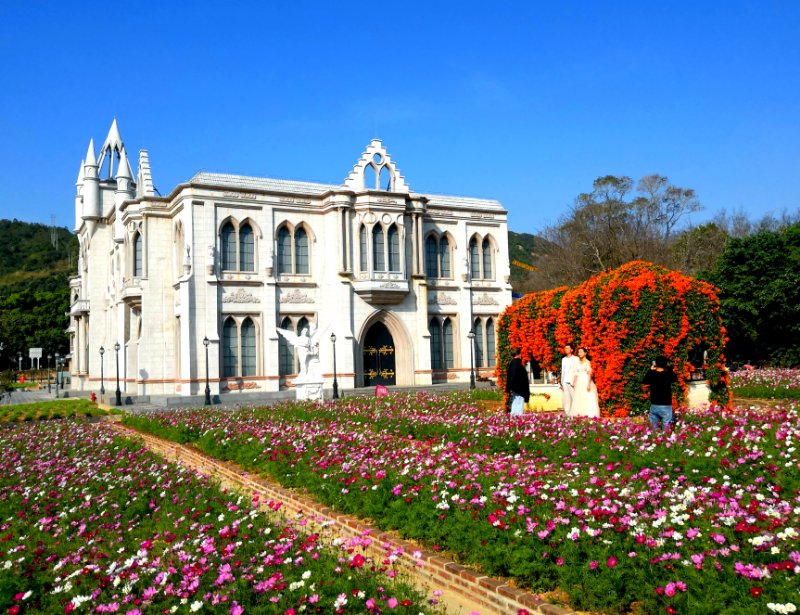 玫瑰海岸文化旅玫瑰海岸文化旅游度假區(qū)位于大鵬新區(qū)葵涌街道溪涌社區(qū),是一家集休閑、度假、住宿、會議、餐飲、娛樂、購物、婚紗攝影、影視拍攝等多項(xiàng)功能于一體的綜合性旅游度假勝地,園區(qū)內(nèi)建有亞洲海邊占地第二大婚禮教堂、室內(nèi)影棚、禮服館、接待大廳、地中海風(fēng)情建筑群、婚俗博藝館、歐式廣場、假山瀑布、雕塑花海、蘇州園林等婚紗攝影景觀,目前園區(qū)內(nèi)占地約30畝的薰衣草、醉蝶、馬鞭草等鮮花盛開,是踏青賞花的好去處,更是大鵬新區(qū)精心打造的“婚紗攝影、愛情海岸”。(韋建誠文/圖)