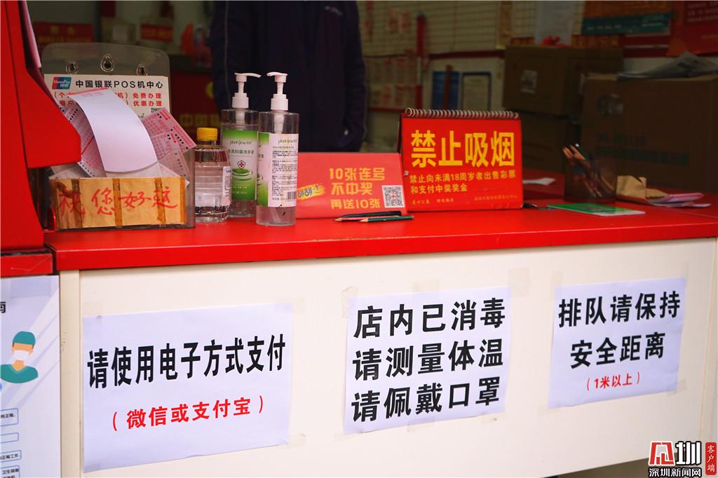 另一家在福田區(qū)華發(fā)北路,店號為83021044的投注站點,門口已經(jīng)被店員用桌子堵上,并貼上了相關防疫告示,“之前深圳福彩中心的工作人員來檢查過,后續(xù)也會給我們配送一些防護物資?!庇浾咴诖擞^察了30分鐘,期間僅有兩位彩民前來,共購買了8元彩票。店主馬先生向記者介紹,“以前大家都會來店里邊坐,主要買的是20分鐘開兩次的‘快樂彩’,現(xiàn)在都不給進來,那個彩票也暫停銷售了。”