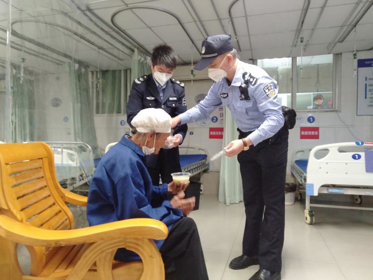 3月30日凌晨1時(shí)許,在醫(yī)務(wù)人員及民警的悉心照料下,老人漸漸蘇醒過(guò)來(lái)。石圍社區(qū)警長(zhǎng)常軍給老人帶來(lái)了口罩和熱粥,一邊照顧老人喝粥,一邊輕聲地詢(xún)間老人的姓名、住址和親人信息等。但老人語(yǔ)言含糊不清、答非所問(wèn),說(shuō)不清自己姓甚名誰(shuí),從哪里來(lái)、要到那里去,也無(wú)任何通訊工具。無(wú)奈,常警長(zhǎng)只好安慰老人好好休息,并安排警力協(xié)同醫(yī)院值守警力對(duì)老人進(jìn)行輪流照看,防止其再次走失發(fā)生意外。