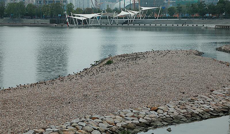 記者在采訪中了解到,2017年初,深圳觀鳥人士發(fā)現人才公園建設接近尾聲,人工島嶼種植了密集的植物。深圳市觀鳥協會隨即向人才公園建設主管部門提出《人才公園鳥類棲息地改善建議》。相關政府部門在征詢了廣東內伶仃福田國家級自然保護區(qū)管理局、市野生動植物保護管理處、南山區(qū)城管局和深圳市觀鳥協會的意見和建議后,就協調處理人才公園水鳥棲息地等問題達成了一致意見,決定在適當位置增加浮灘,增加水鳥停留棲息的空間。整改后的人工碎石灘,很快便吸引了大量的鸻鷸類候鳥前來停棲。"這個人工石灘的距離適中,既方便人類觀察,又不至于讓鳥兒感覺受到威脅,這么多年來,人與候鳥之間一直相安無事,鳥兒也已經習慣了這里的環(huán)境,所以它們才能在人類的眼皮底下安心地打盹兒。""PT"向記者介紹說。