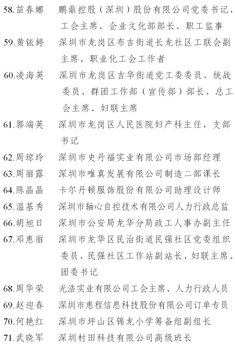 希望受到表揚的集體和個人,珍惜榮譽、發(fā)揚成績,立足本職、再接再厲,繼續(xù)在本職崗位上發(fā)揮模范帶頭作用!也希望全市廣大女職工要以受表揚的先進集體和個人為榜樣,為深圳建設中國特色社會主義先行示范區(qū)貢獻自己的力量!