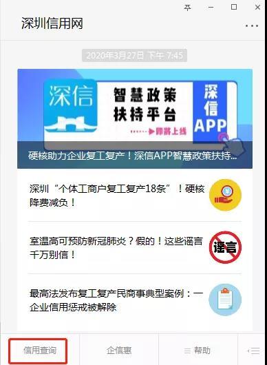 ▲深圳信用微信公眾號(hào)也可查詢。