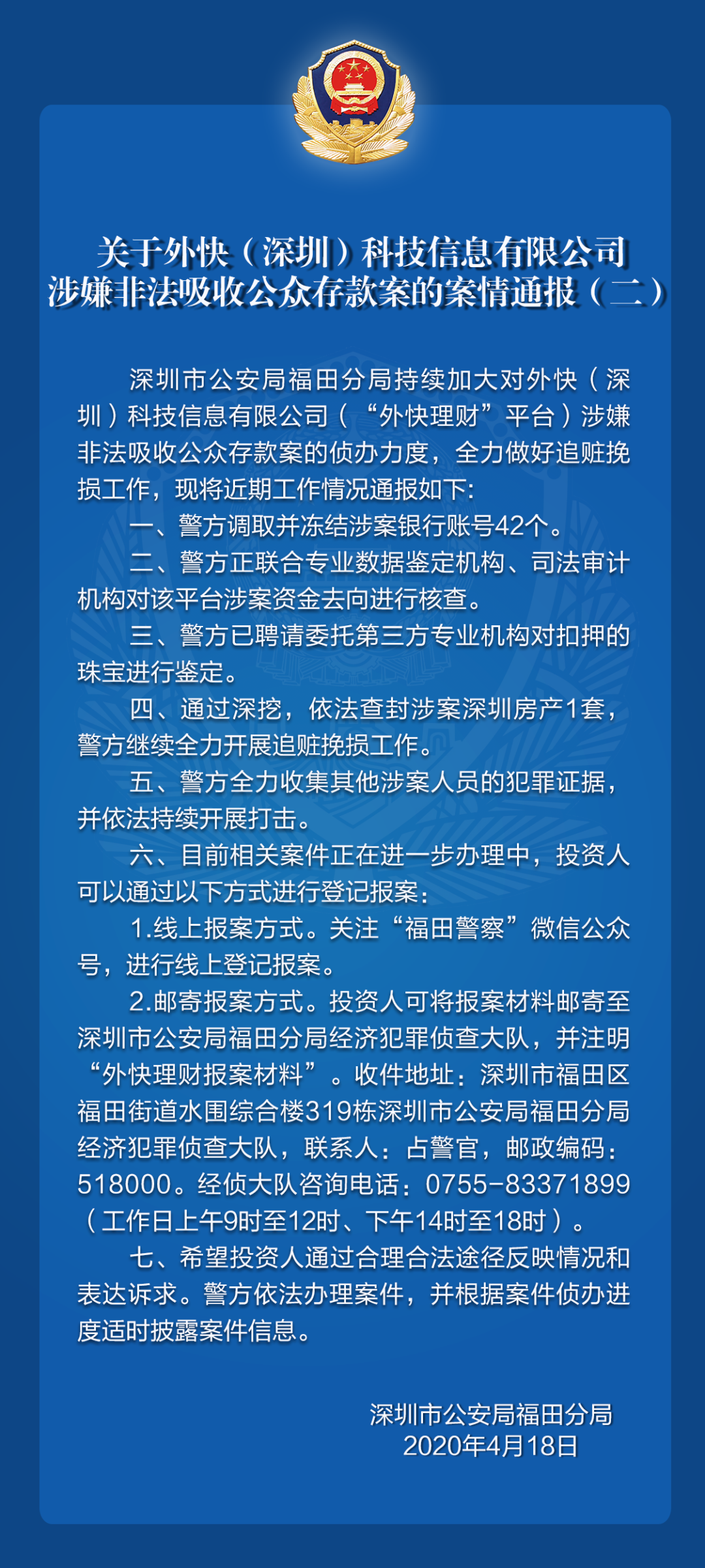關(guān)于外快(深圳)科技信息有限公司涉嫌非法吸收公眾存款案的案情通報(bào)(二)