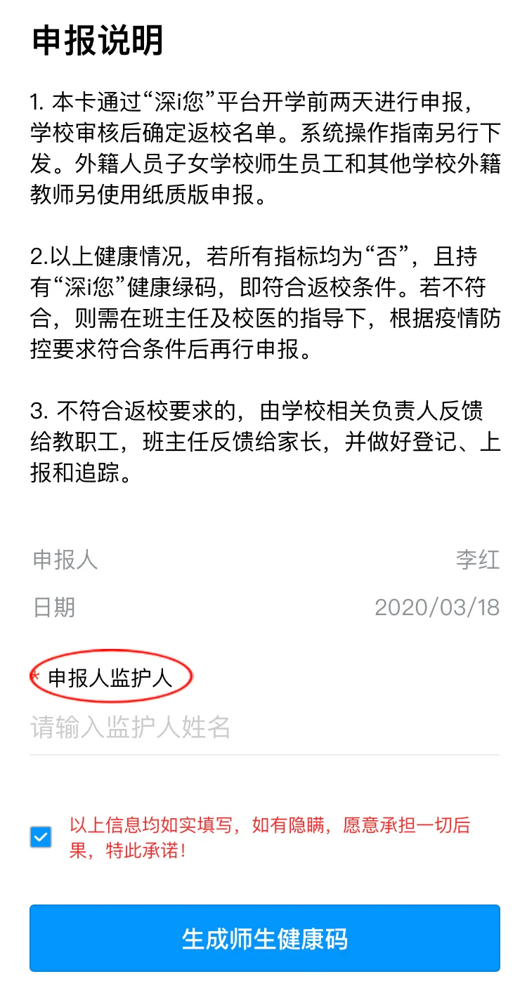 請根據(jù)實際情況完成健康信息申報,包括選擇家庭住址、申報健康情況、填寫監(jiān)護人姓名。