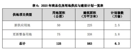 從商品住房用地安排來看,2020年度計(jì)劃安排商品住房用地供應(yīng)125公頃,包括新供應(yīng)用地50公頃,更新整備用地75公頃。同時(shí),計(jì)劃共計(jì)擬建設(shè)擬建設(shè)商品住房6.3萬套、建筑面積563萬平方米。其中新供應(yīng)用地?cái)M建設(shè)2.5萬套、建筑面積約225萬平方米;更新整備用地?cái)M建設(shè)3.8萬套、建筑面積約338萬平方米。