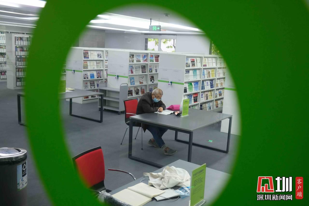 福田圖書館內(nèi),一位市民正在閱讀報(bào)紙。