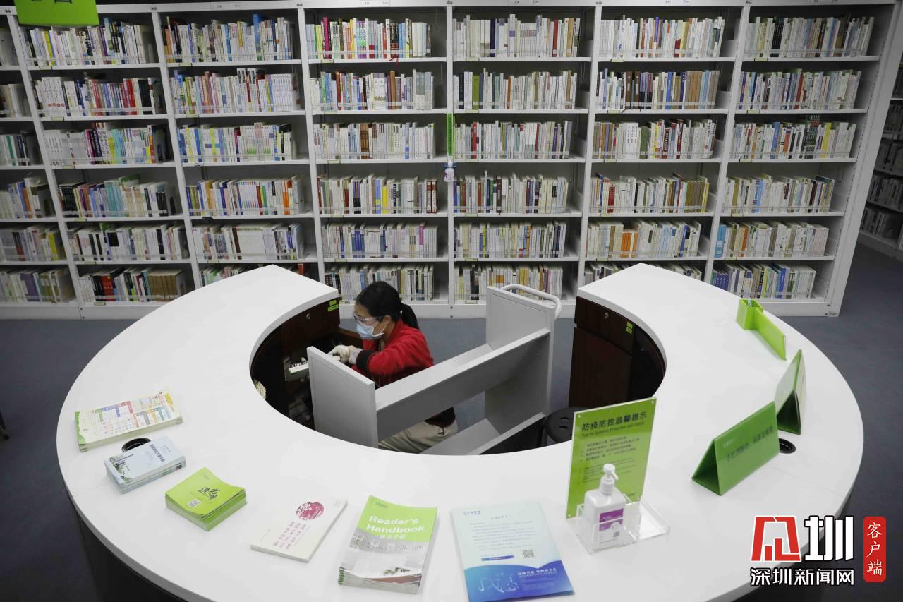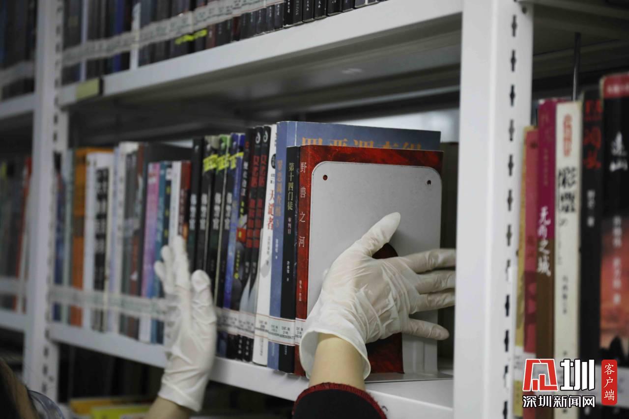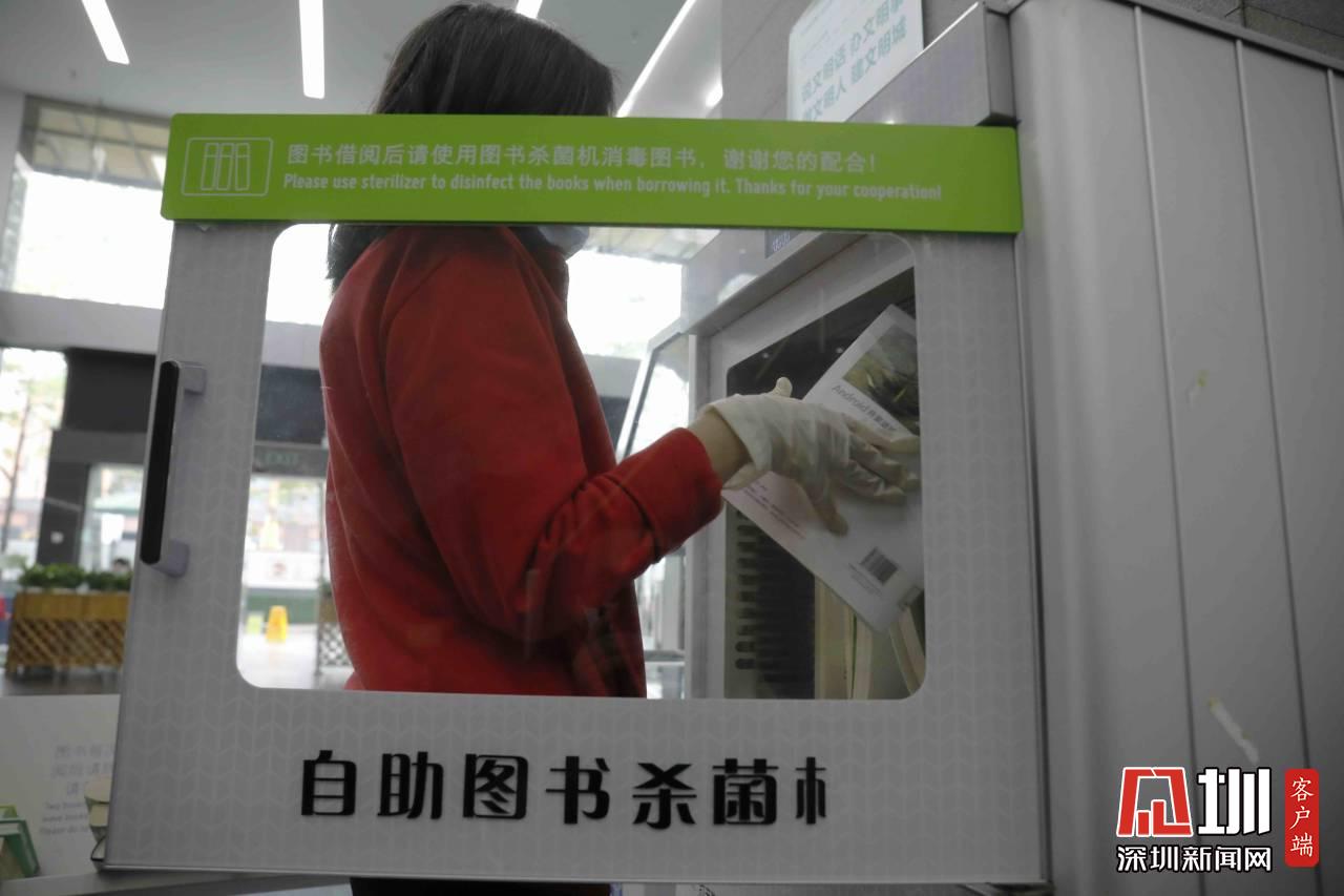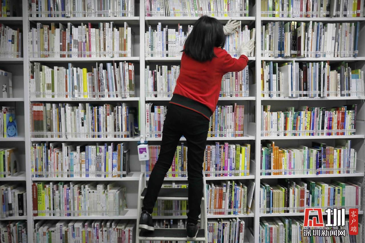 工作人員正在對(duì)福田圖書館的書做消毒處理。