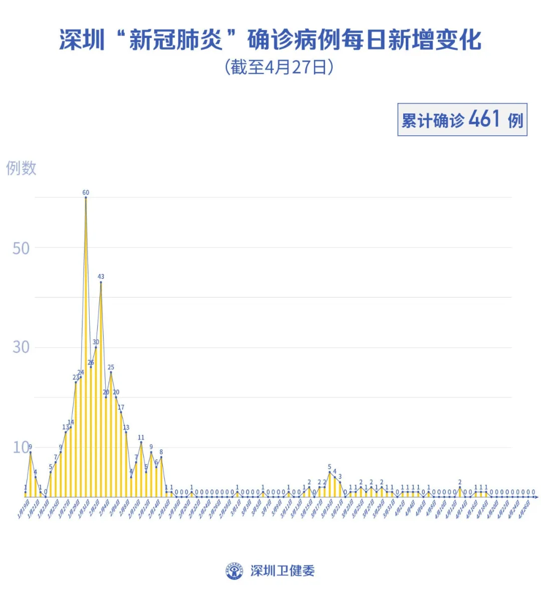 截至4月27日24時,深圳累計(jì)報(bào)告新冠肺炎病例461例。4月27日當(dāng)天新增無癥狀感染者1例,出院1例。