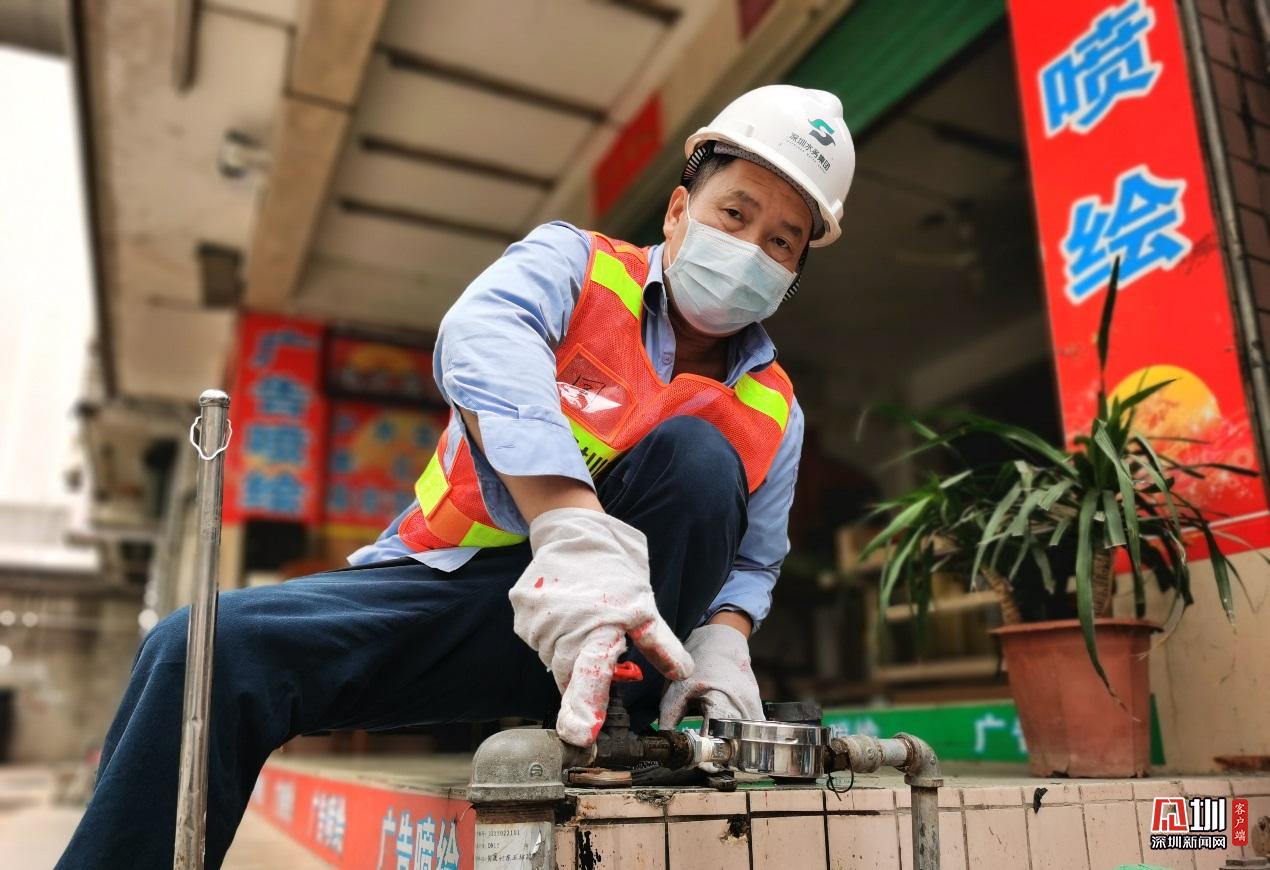 福田分公司福中水務(wù)所維修工陳國(guó)明,正對(duì)水表進(jìn)行關(guān)停,準(zhǔn)備開始維修工作。