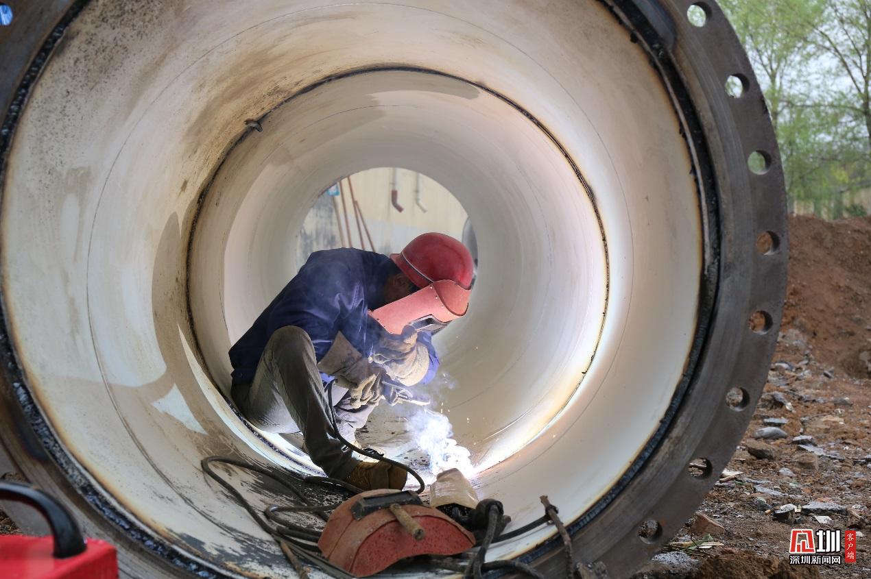 焦作水務(wù)公司電焊工申強(qiáng),正對(duì)府城水廠配套新城加壓站 DN1200管道進(jìn)行工藝焊接。