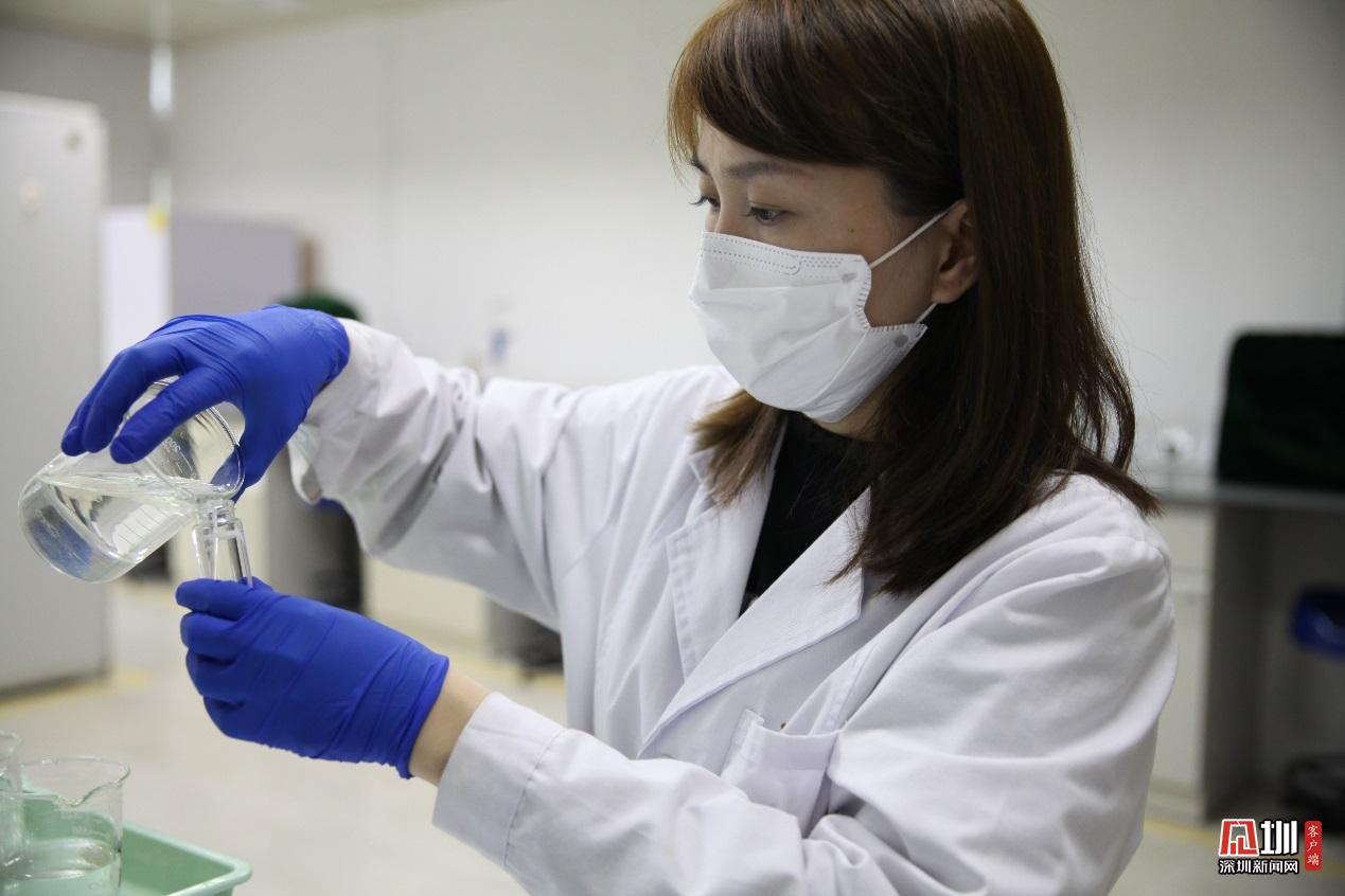 光明水務公司水質(zhì)化驗員陳寶珠,正一絲不茍檢測水質(zhì)。