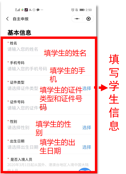 ②完成后系統(tǒng)提示進行學生登記,進入學生登記后列表,若沒有學生的信息,需要為學生進行自主申報。方式為:點擊首頁自主申報,按照系統(tǒng)提示為學生完成申報。