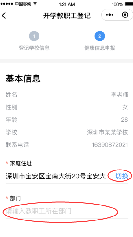 ①在首頁開學專區(qū),點擊“教職工登記”進入申報人員列表,進行自主申報和實名認證。