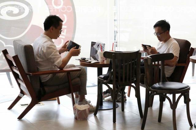 ▲不少市民選擇在商場吹空調休憩。