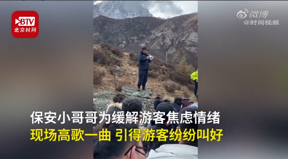 保安小哥哥這一舉動(dòng)安撫了游客的情緒
