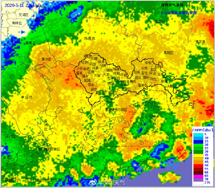 23時(shí)32分:【深圳市取消暴雨黃色和大風(fēng)黃色預(yù)警,雷電預(yù)警繼續(xù)生效】強(qiáng)降雨帶已經(jīng)移出我市,市氣象臺(tái)于2020年05月11日23時(shí)30分在全市取消暴雨黃色、大風(fēng)黃色預(yù)警。全市雷電預(yù)警仍在生效中,未來1-2小時(shí)仍有陣雨和零散雷暴,市民仍需注意遠(yuǎn)離河道和危險(xiǎn)邊坡等。