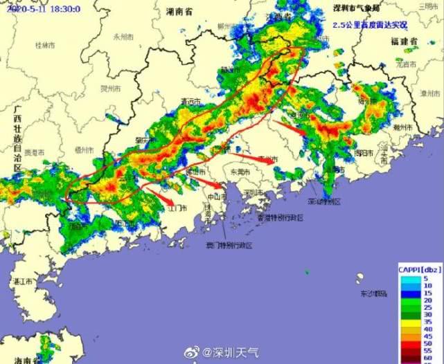 20時(shí)56分:目前強(qiáng)雷雨云團(tuán)已開始影響寶安北部,未來一小時(shí)強(qiáng)雷雨自西向東影響寶安、光明、龍華、南山、福田、羅湖區(qū),上述區(qū)域最大小時(shí)雨量30-40毫米,請(qǐng)大家注意做好防御。