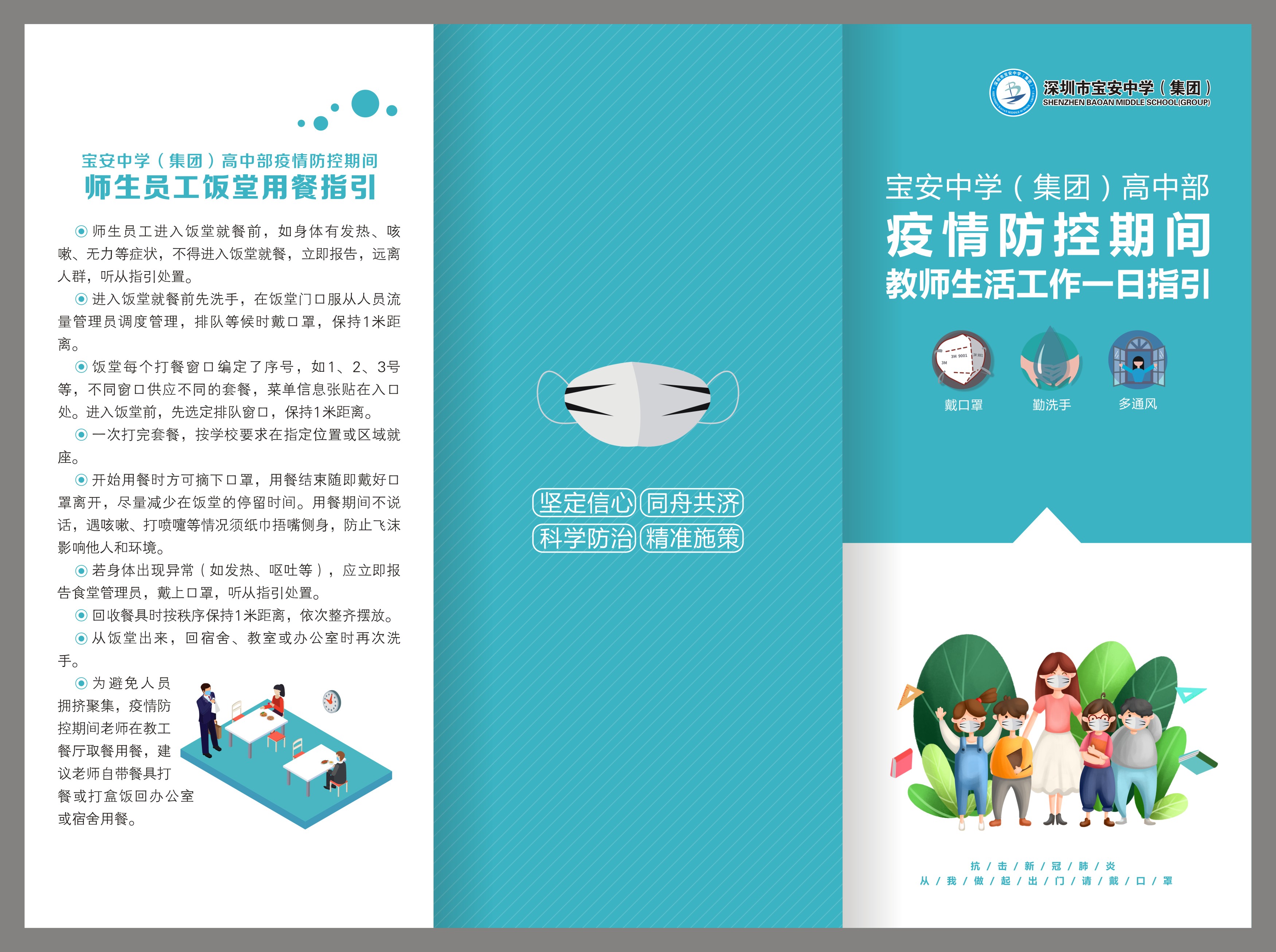 早在3月,返校復(fù)課的相關(guān)準(zhǔn)備工作就已經(jīng)在緊鑼密鼓地推進中。為了規(guī)范師生返校復(fù)課各項措施和要求,在深圳市教育局發(fā)布復(fù)課防控疫情工作指引之前,彭鍛華就結(jié)合疫情形勢變化與學(xué)校實際,提出制定寶中集團的《學(xué)生學(xué)習(xí)生活一日指引》《教師工作生活一日指引》,對在校師生每天各個 時段 、各個 地點 的學(xué)習(xí)、工作和生活做出了明確指引。