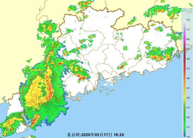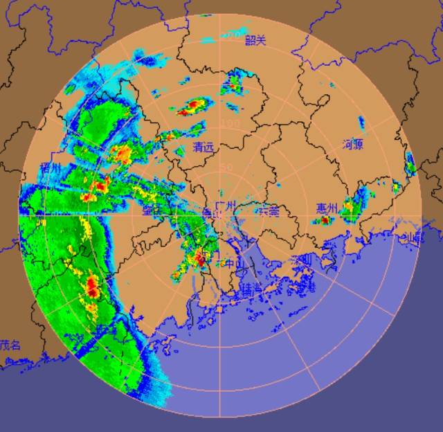 截至17日17時,雷達(dá)回波圖顯示,降雨已經(jīng)影響到茂名、陽江、江門、肇慶等地,正繼續(xù)向東移動,將于晚間影響珠三角、粵東等地。
