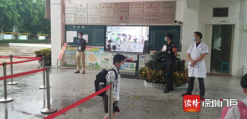 “同學(xué)們好!”“歡迎回來(lái)!”從7點(diǎn)起,明德實(shí)驗(yàn)學(xué)校校長(zhǎng)魯江與工作人員就在香蜜校區(qū)校門(mén)口迎候?qū)W生們,提醒孩子們戴好口罩,也與家長(zhǎng)們交流返校事宜。校門(mén)口的一臺(tái)超氧水消殺機(jī)器人也在積極投入工作,工作人員在后臺(tái)控制面板可以監(jiān)測(cè)到入校人員的體溫情況。