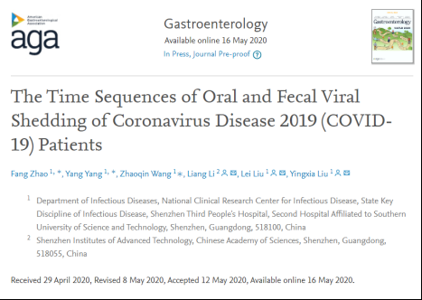 見圳客戶端·深圳新聞網(wǎng)2020年5月20日訊(深圳特區(qū)報記者 戴曉蓉 通訊員 深三院)國際知名醫(yī)學雜志“胃腸病學(Gastroenterology)”于5月16日在線重磅推出了深圳市第三人醫(yī)院(深圳三院)關于新冠肺炎患者腸道排毒特征及規(guī)律的研究論文《The Time Sequences of Oral and Fecal Viral Shedding of Coronavirus Disease2019(COVID-19) Patients》。該雜志的學術影響力在胃腸病學和肝病專業(yè)領域排名第一。