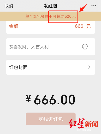 見圳客戶端·深圳新聞網2020年5月20日訊 今天是5月20日,“520”諧音“我愛你”,被網友們賦予了“節(jié)日”屬性。騰訊微信團隊宣布,5月20日00:00-23:59,微信普通紅包的單個金額上限由200元上調到520元。此前微信普通紅包單個限額200元,如果需要發(fā)送超過200元的紅包給好友,則需要分次發(fā)送。