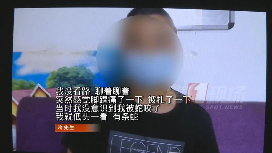 5月21日晚上7點(diǎn)多,市民冷先生和家人吃完晚飯后,獨(dú)自來到位于坑梓的五馬峰公園散步。他一邊散步一邊跟朋友視頻聊天。剛走沒多久,冷先生突然感覺自己的右腳有點(diǎn)不對勁,有被扎了一下的感覺。他低頭一看,原來是被蛇咬傷了。