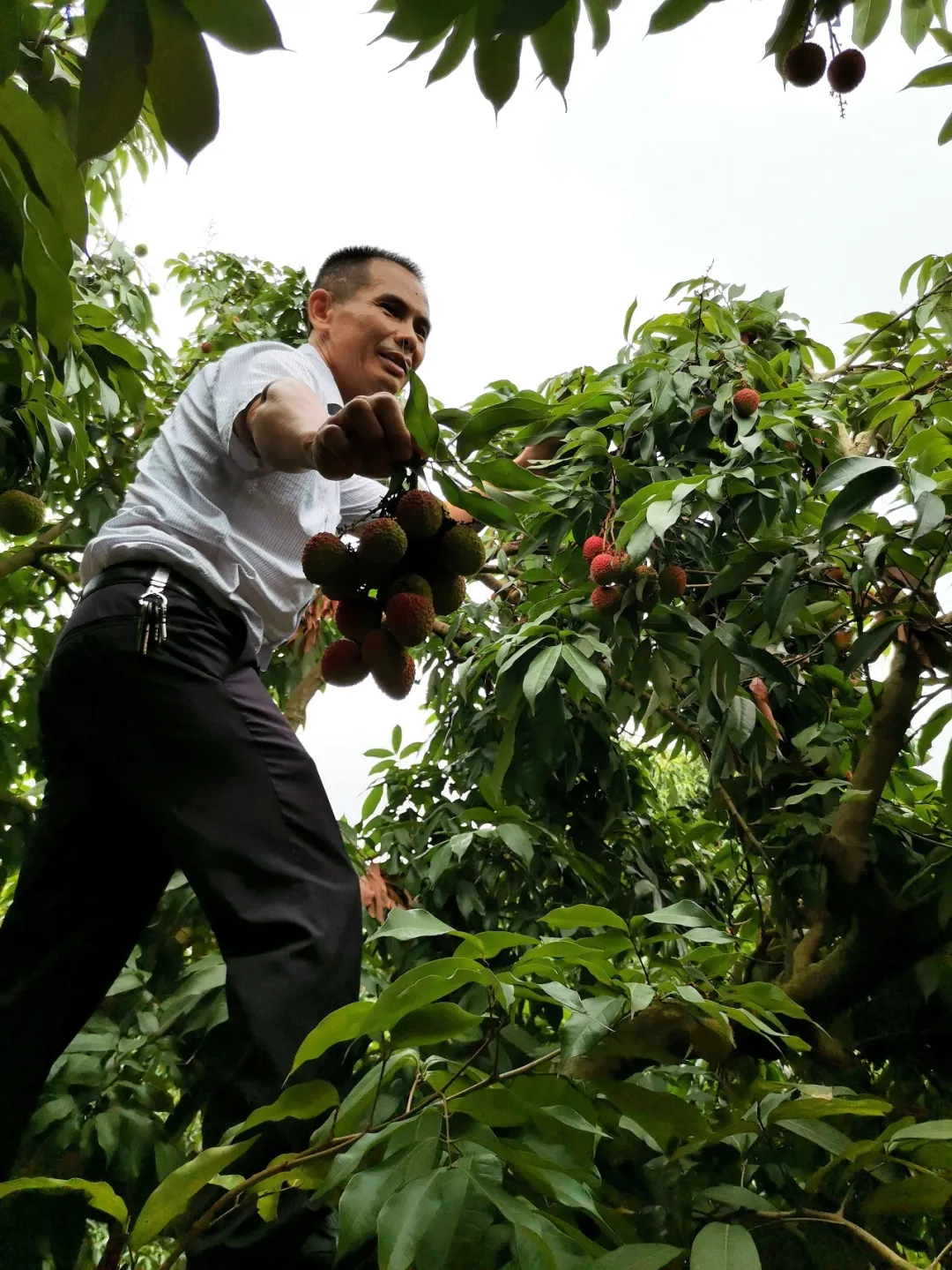 5月28日,西麗果場的種養(yǎng)專家邱金淡一早來到園區(qū),開展病蟲防治,清理荔枝樹上破裂的荔枝。前幾日,一場猛烈的龍舟雨,讓長勢正旺的糯米糍遭受當頭一擊,不少爆漿裂果。邱金淡在南山種植荔枝20多年,對各種“天災意外”波瀾不驚,談起今年的收成,他苦笑著說,“種植就是看老天爺吃飯”。受雨水影響,糯米糍、桂味減產(chǎn)明顯。早熟品種妃子笑受影響較小,已由青轉(zhuǎn)紅成熟,開始陸續(xù)上市。