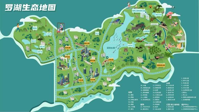 據(jù)介紹,作為全市最早開發(fā)城區(qū),羅湖至今仍保留一半山水一半城生態(tài)格局,全區(qū)面積78.75平方公里。其中,建成區(qū)僅34.67平方公里,生態(tài)保護區(qū)面積占比超過50%,森林覆蓋率達51.86%,城市綠化覆蓋率達64.6%。森林、濕地、湖庫和野生動植物共同構(gòu)成陸地生態(tài)系統(tǒng)的主體。