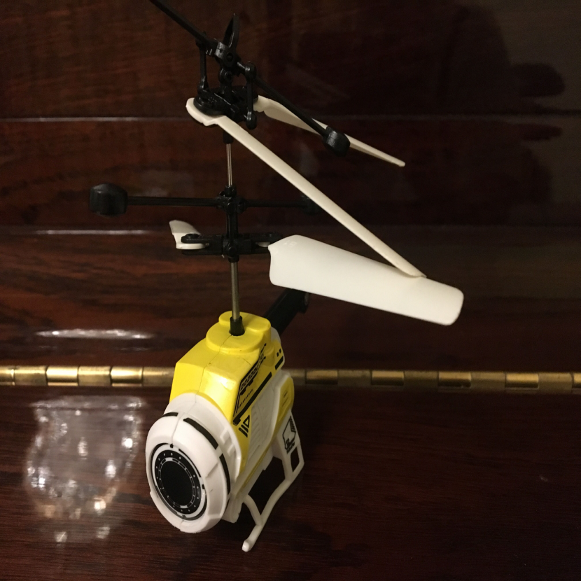 ▲這是我的高科技玩具,感應(yīng)飛行器,它的機(jī)殼上有一個體外紅外線裝置,使它一碰到物體就能自動感應(yīng)到障礙避開飛行。