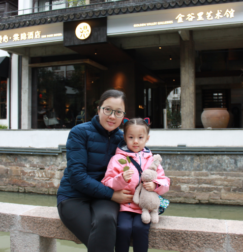 ▲媽媽和幼兒園小朋友的合照。