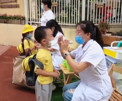 孩子們依次進行體溫檢測